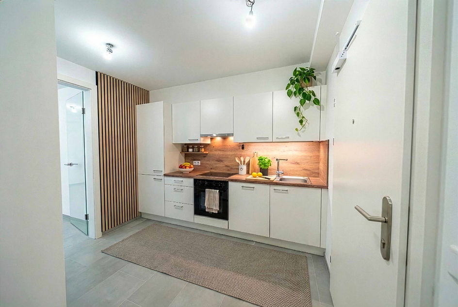 Ergänzt wird die Einheit durch ein kompaktes Badezimmer mit ca. 4,50 m², eine Küchenzone im Flurbereich sowie zusätzliche Abstellflächen. Die Wohnung eignet sich ideal für Personen, die eine funktionale, gut geschnittene und flexible Wohnlösung suchen.