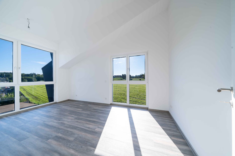 Das 14,69 m² große Kinder- bzw. Arbeitszimmer ist rein ostseitig ausgerichtet und wird morgens von sanftem Tageslicht erhellt. Elektrisch steuerbare Raffstores ermöglichen jederzeit zuverlässige Verdunkelung, sodass sich der Raum gleichermaßen als gemütliches Schlafzimmer wie auch als ruhiges Home-Office nutzen lässt.